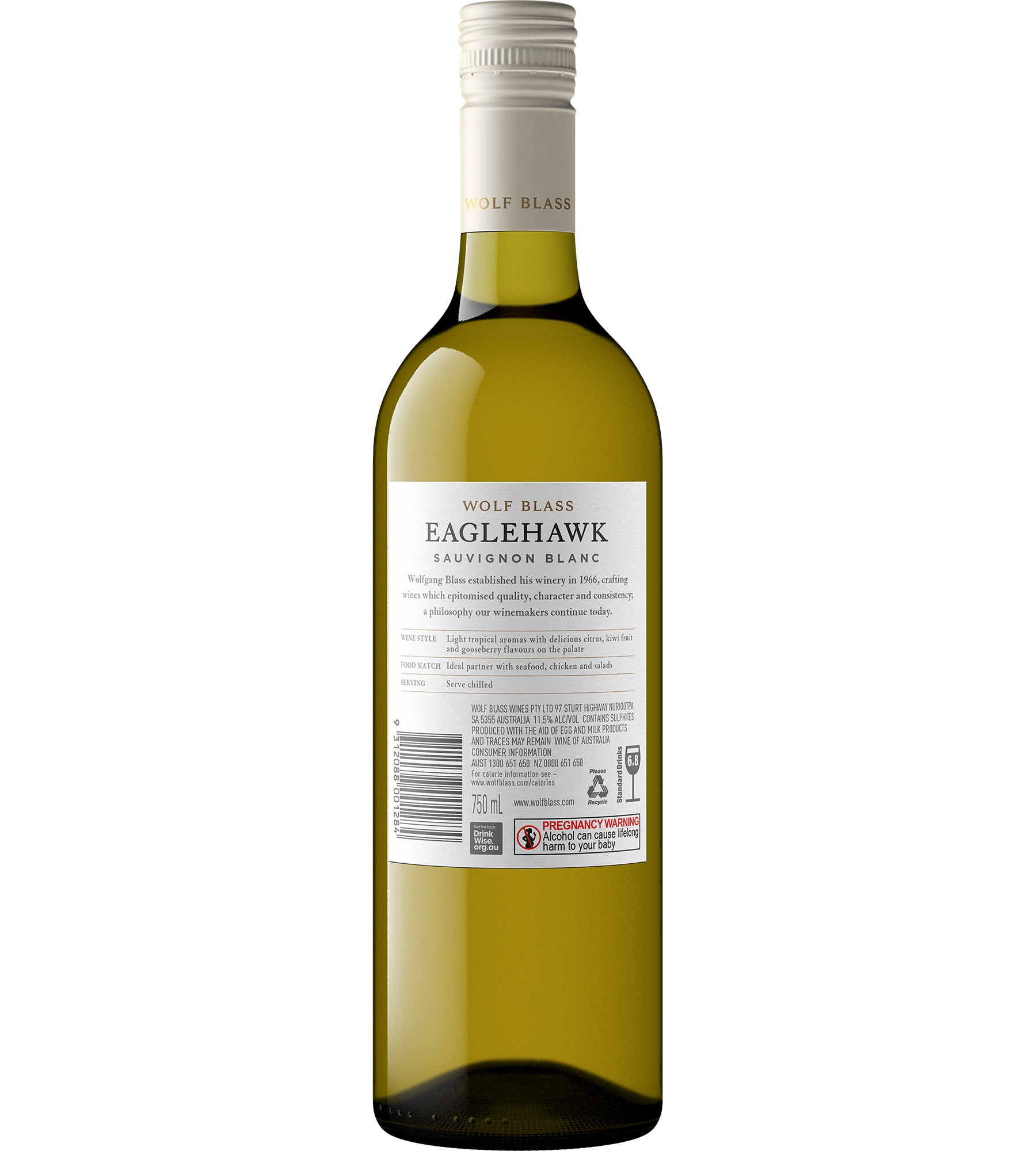 Wolf Blass Eaglehawk Sauvignon Blanc is a fresh, crisp white wine with a lifted nose of grapefruit, passionfruit, guava and gooseberry. The palate is bright and lively, with juicy fruit flavours, a light body and a clean, refreshing finish.